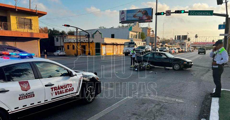 Reynosa, Tamaulipas. – Un estudiante de medicina resultó lesionado la mañana de hoy miércoles al chocar con un auto que conducía una dama, quien presuntamente se pasó la luz amarilla de un semáforo en Reynosa.