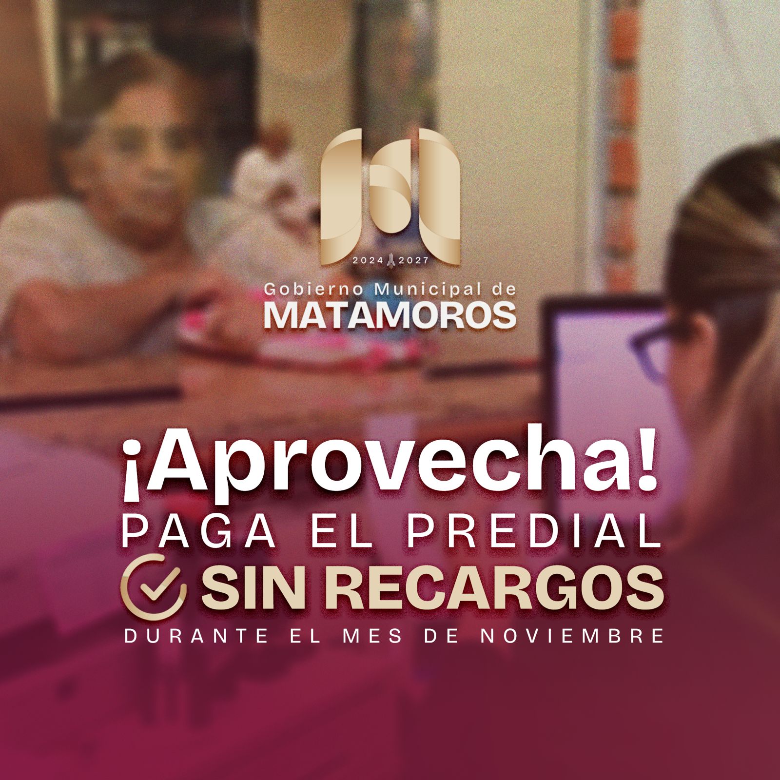 Matamoros, Tamaulipas. - Con el propósito de impulsar el desarrollo y la mejora de la infraestructura urbana en Matamoros, el alcalde Alberto Granados Fávila invitó a la ciudadanía a aprovechar el descuento en recargos del impuesto predial durante el mes de noviembre.