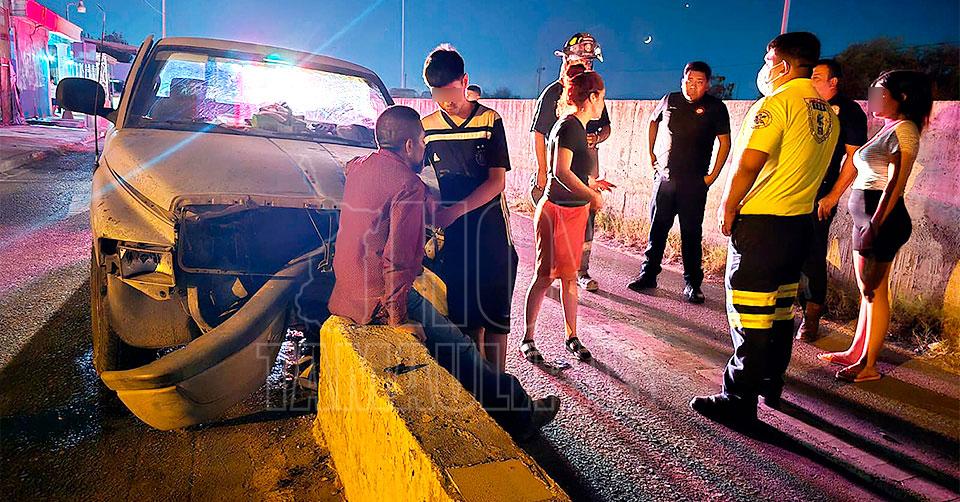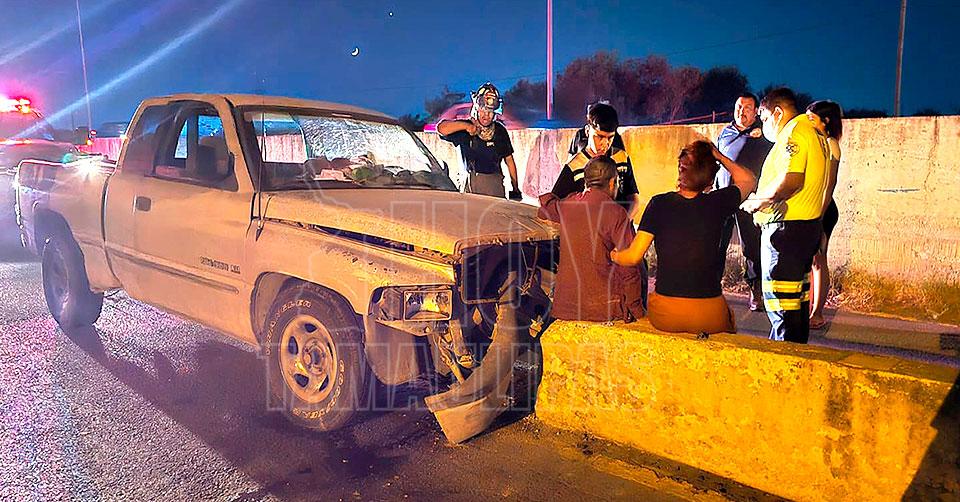 Nuevo Laredo, Tamaulipas. — Un albañil salvó la vida tras chocar su camioneta contra un muro de contención de la Carretera Aeropuerto de Nuevo Laredo, a la altura de la colonia La Joya.