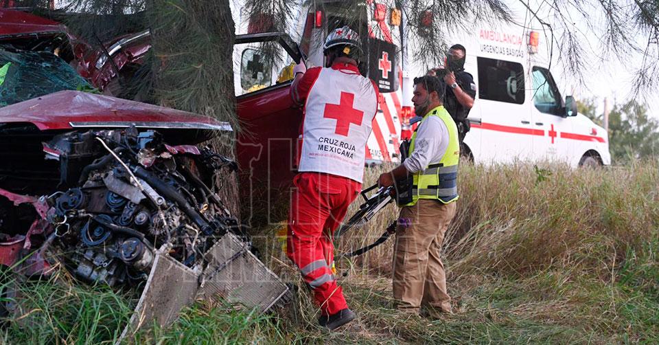 Sin control, se estrelló contra un pino ubicado a bordo de la carretera y quedó prensada por más de una hora, hasta que rescatistas de la Cruz Roja y Protección Civil lograron liberarla.