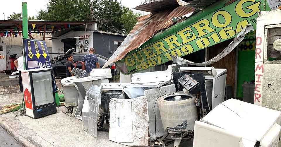 Nuevo Laredo, Tamaulipas. — Al menos diez lavadoras resultaron dañadas luego de que un jovencito de 16 años se las llevó de encuentro con su vehículo tras perder el control por viajar a exceso de velocidad en la colonia Militar de Nuevo Laredo.