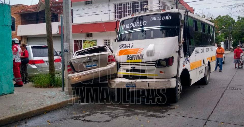 Ciudad Victoria, Tamaulipas. – Al menos 10 pasajeros resultaron lesionados luego que el microbús de la Ruta-7 en el que viajaban fue impactado por un auto particular, cuyo conductor se pasó un alto en el 14 Ocampo en Ciudad Victoria.
