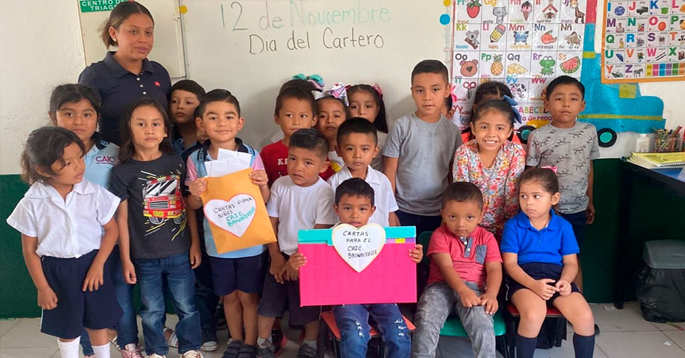 Como parte de las actividades que refuerzan su educación, en el día del cartero, alumnos del CAIC Miguel Alemán, recibieron la visita de un trabajador del servicio postal mexicano que interactuó con los menores de edad para hacer referencia a la labor tan importante que desempeñan al entregar correspondencia a hogares en todo el mundo.