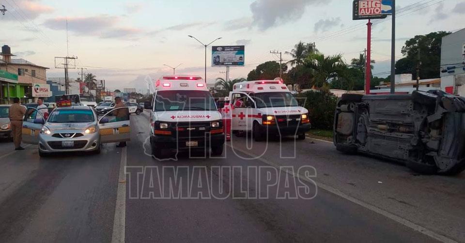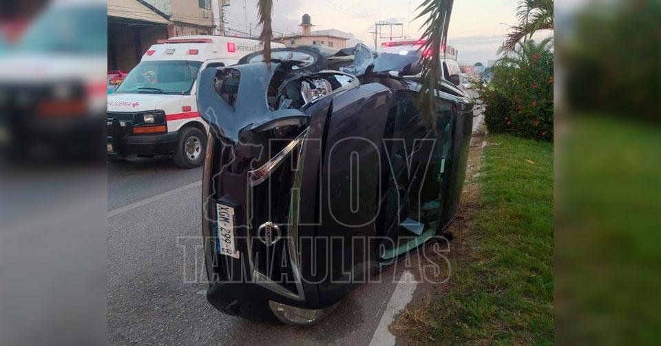 Tampico, Tamaulipas. - Una joven lesionada y cuantiosos daños materiales, dejó la aparatosa volcadura de un vehículo ocurrida a temprana hora de este viernes en Tampico.