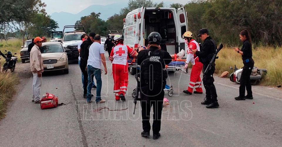 Grave mujer tras impactar su motoneta contra motocicleta en ejido de Victoria