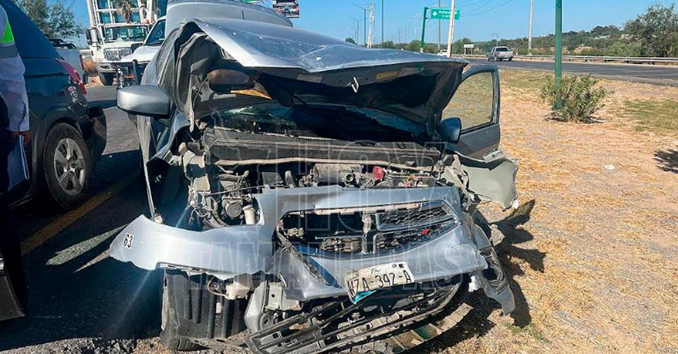Nuevo Laredo, Tamaulipas.— Una camioneta Nissan Quest y un Dodge Attitude terminaron con daños considerables tras un aparatoso accidente por alcance registrado en el Bulevar Colosio, a la altura de Transformación, al oriente de Nuevo Laredo.