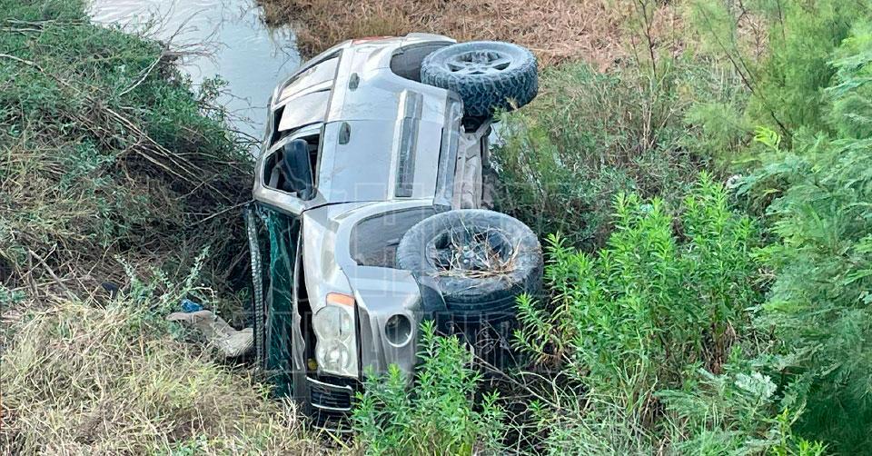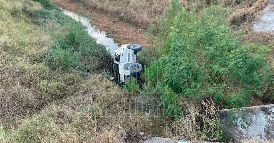 Los hechos ocurrieron esta tarde, cuando al conductor se le descontroló la camioneta que manejaba y fue a caer al dren que se encuentra a orilla de carretera, dando marometas la unidad hasta quedar de lado.