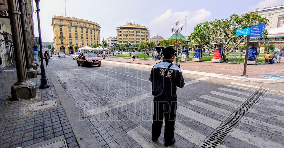 Explicó que la instrucción a los elementos es mantenerse en guardia en el perímetro citado, que abarca unas 40 manzanas alrededor del Palacio Municipal, donde existen señalamientos de prohibición de parar unidades.