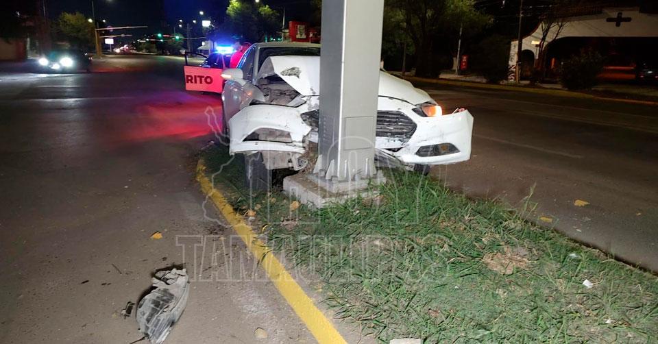 Ciudad Victoria, Tamaulipas. – Al menos cuatro ocupantes de un automóvil Ford Fusión blanco resultaron lesionados esta madrugada en Ciudad Victoria, al estrellarlo con un poste de cámaras del C-4, en el Boulevard Tamaulipas con calle Veracruz.