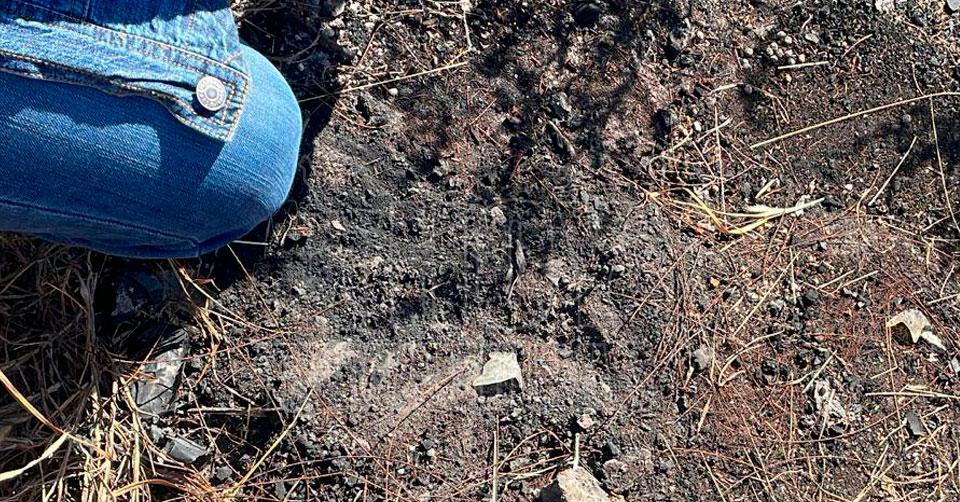 Reynosa, Tamaulipas. - Personal del Colectivo ‘Lazos Unidos Por Encontrarlos’ localizó este mediodía restos humanos calcinados en un camino de terracería junto a la avenida principal del Fraccionamiento Los Fresnos en la ciudad de Reynosa.