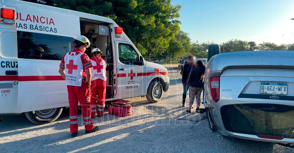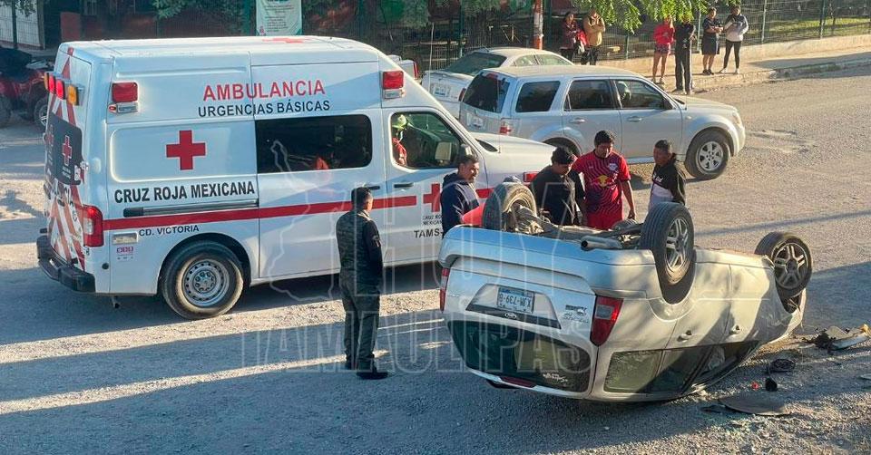 Ciudad Victoria, Tamaulipas. - Un joven estudiante que se trasladaba a la escuela resultó lesionado esta mañana al volcar su automóvil en el Fraccionamiento Luis Quintero en Ciudad Victoria.