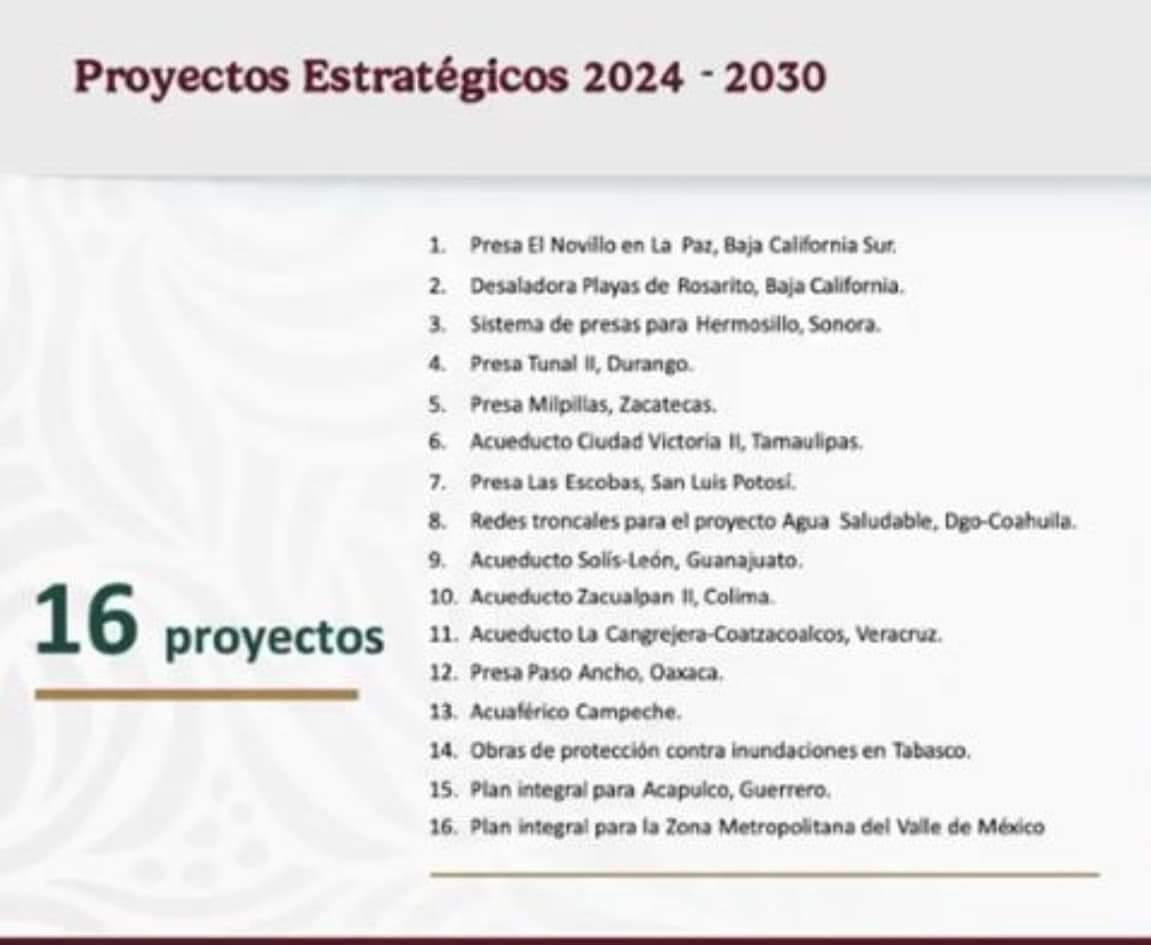 Ciudad Victoria, Tamaulipas. - La presidenta de México, Claudia Sheinbaum Pardo, anunció esta mañana el Plan Nacional Hídrico para el 2025 que contempla 16 proyectos, de los cuales el número 6 es la construcción de la segunda línea del Acueducto Guadalupe Victoria en Tamaulipas.