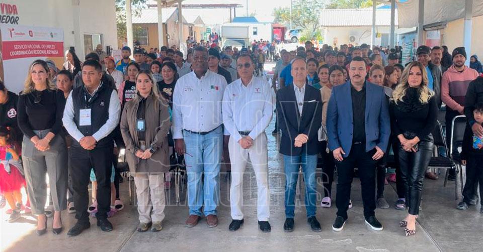 Reynosa, Tamaulipas. - El Servicio Nacional del Empleo, llevó a cabo la feria del empleo para la población migrante de Reynosa.