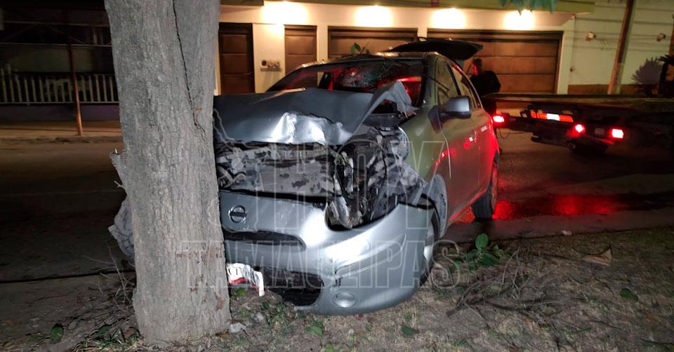 Ciudad Victoria, Tamaulipas.– Una pareja en estado de ebriedad resultó con lesiones graves esta madrugada al estrellar su vehículo contra un árbol en el 15 Michoacán.
