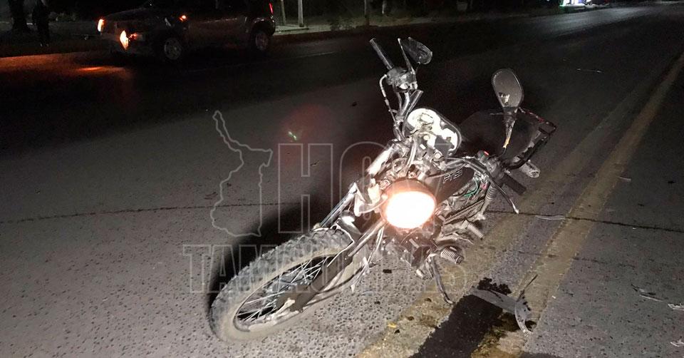 Ciudad Victoria,Tamaulipas.- Un motociclista resultó lesionado tras ser atropellado por una conductora la noche de ayer viernes en la carretera Victoria - Monterrey.