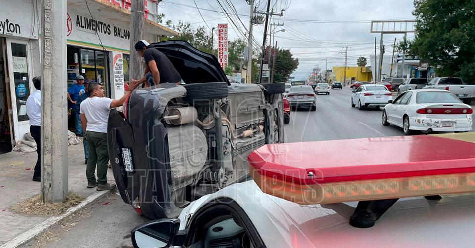 Dos lesionados dejó choque y volcadura en Ciudad Victoria