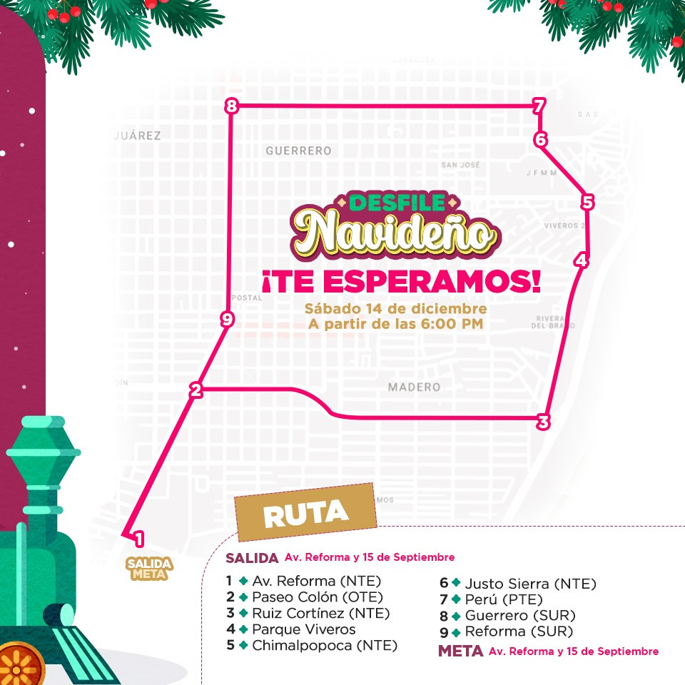 El recorrido del desfile llevará el espíritu festivo a las calles de la ciudad, partiendo de Reforma y 15 de septiembre y pasando por las principales avenidas, donde las familias podrán disfrutar del contingente.