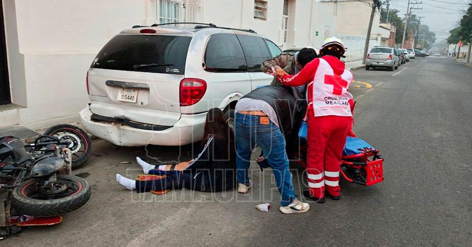 Ciudad Victoria, Tamaulipas. - Al menos cinco jóvenes lesionados y daños materiales de consideración, fue el saldo que dejó un choque entre tres motocicletas en el 18 Guerrero en Ciudad Victoria.