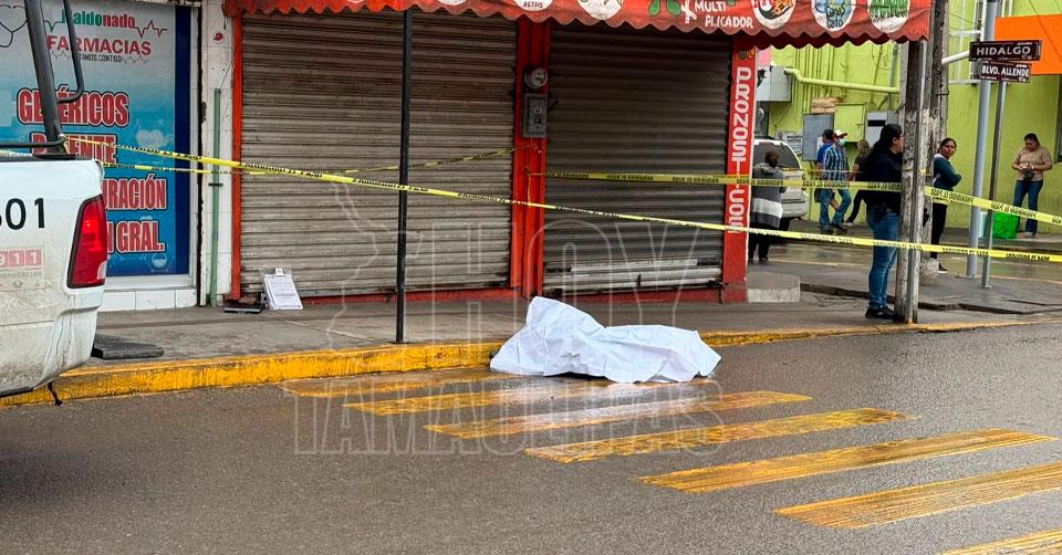 El cuerpo sin vida quedó a un costado de la banqueta a la altura de la intersección que forman el bulevar Allende y la calle Miguel Hidalgo, ante la mirada atónita de las personas que pasaban por el sitio.