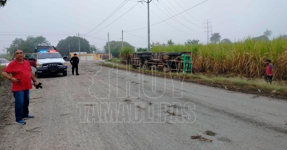 Vuelca camión cargado con 20 toneladas de caña en El Mante