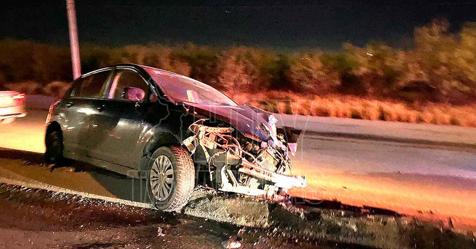 Nuevo Laredo, Tamaulipas. — Un joven conductor terminó con su vehículo destrozado en el camellón del Segundo Anillo Periférico en Nuevo Laredo, tras conducir a exceso de velocidad.