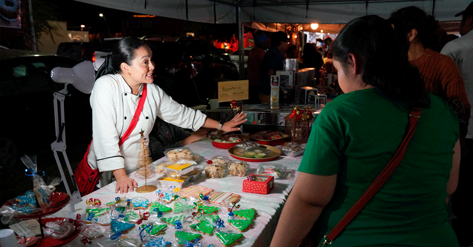 Apoyan familias neolaredenses a emprendedores locales en bazar navideño