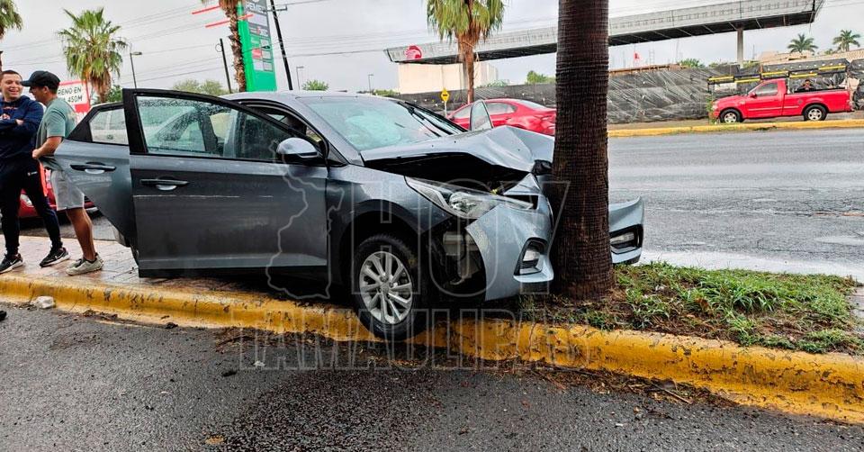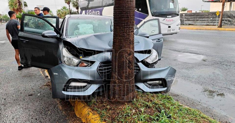 Sin embargo, al reaccionar y querer detenerse su auto derrapó y se estrelló con una palmera del camellón.