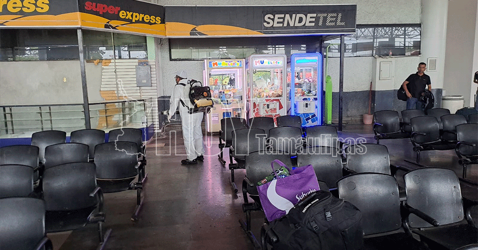 Sanitizan Central de Autobuses de Tampico ante salidas de miles de usuarios