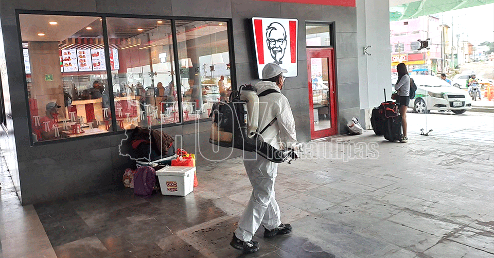 "Son labores de sanitización, ya que ahí es donde convergen la mayor parte de los turistas terrestres, llegan al Puerto, a Tampico y Ciudad Madero, y pues como medida preventiva hacemos esta sanitización, ya que el producto tiene un poder residual de varios días, así es que como la bacterias y virus no se ven, se echa el producto y cuando llegan el producto mata las bacterias y a los virus los destruye", precisó.