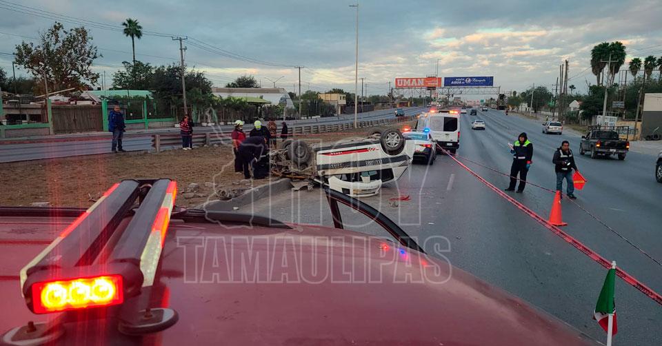 Muere niño de siete años en volcadura de taxi en carretera a Río Bravo; responsable huyó