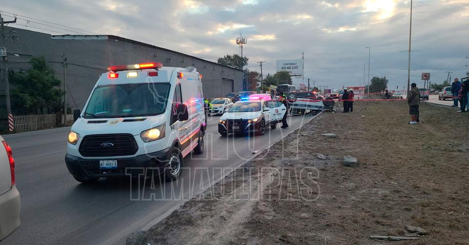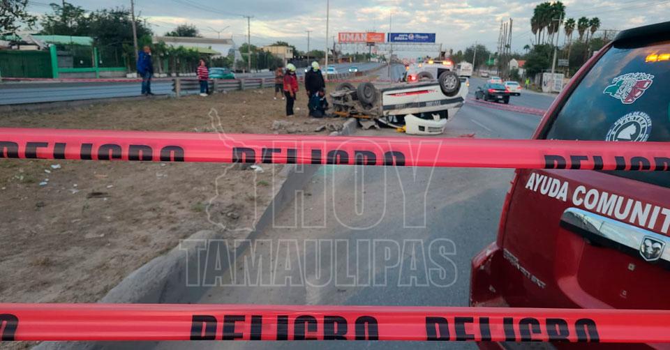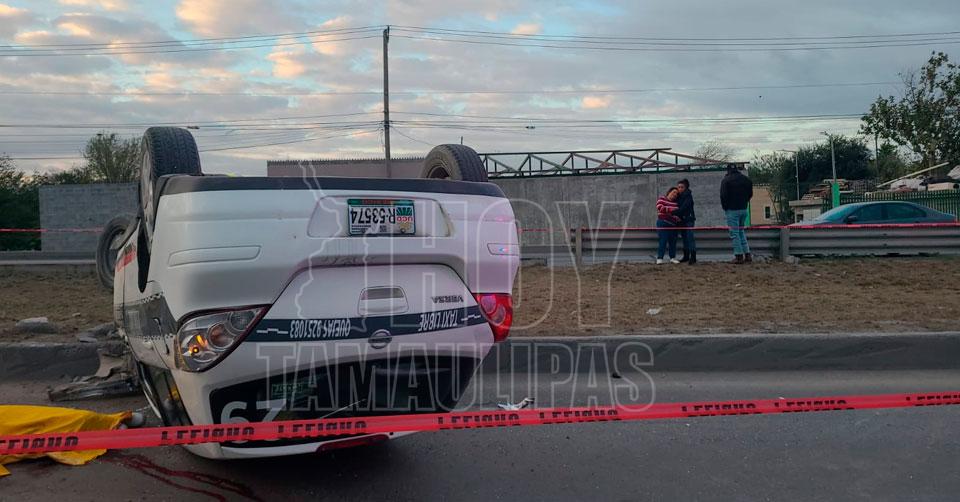 Reynosa, Tamaulipas.- Un trágico accidente ocurrió en la carretera a Río Bravo, cuando un taxi volcó y un niño de siete años murió aplastado. El conductor del taxi escapó del lugar después del accidente.