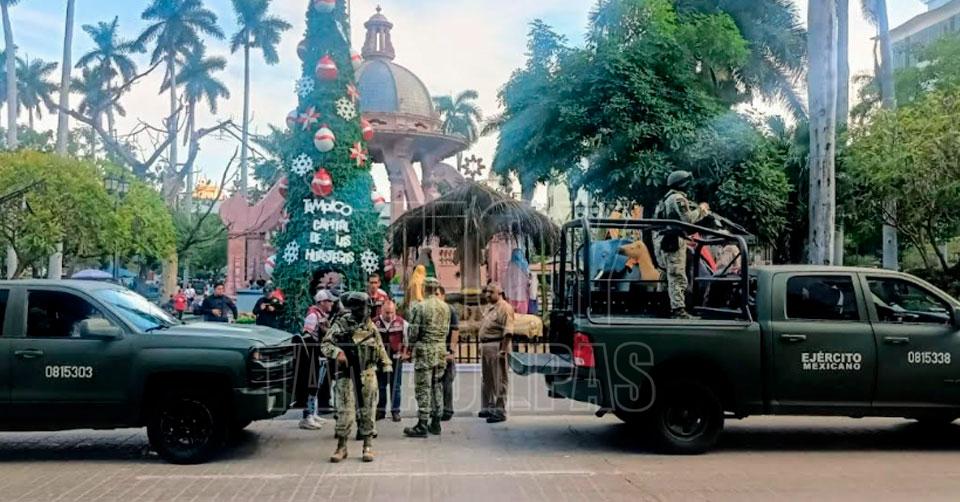 Tampico, Tamaulipas. - El Ayuntamiento de Tampico, con las diferentes corporaciones de seguridad pública como el Ejército Mexicano y Guardia Nacional, realizó un operativo preventivo en el Centro Histórico y diversas zonas comerciales para detectar incidentes negativos que vayan en detrimento de la población.
