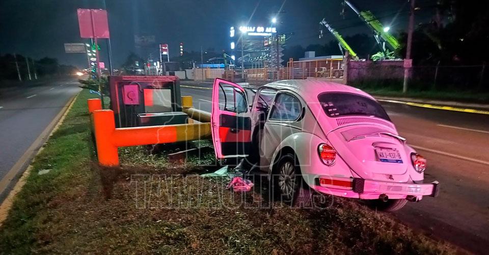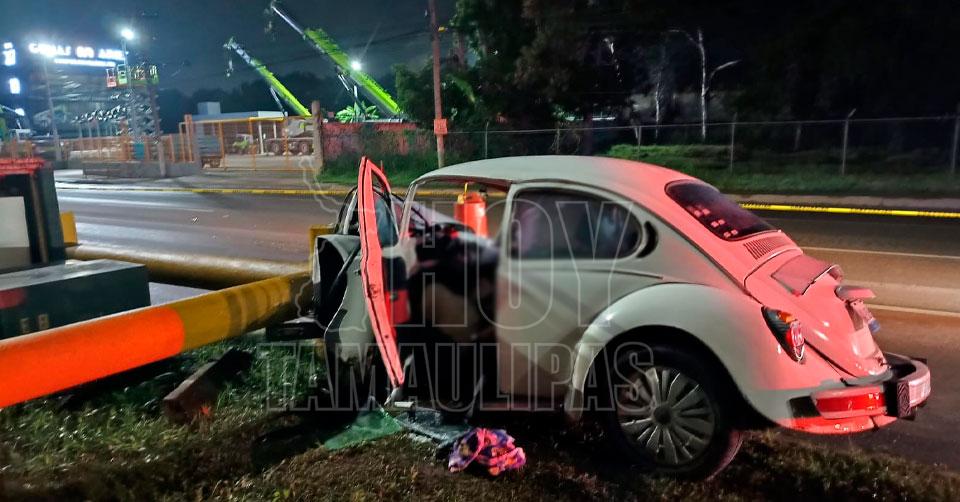 Fallece conductor de 'vocho' al estrellarse contra contención en Altamira