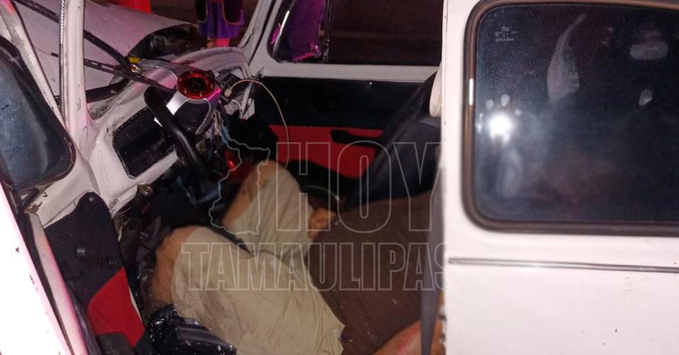 Altamira, Tamaulipas. - El conductor de un automóvil Volkswagen de los llamados "vochitos" perdió la vida de manera trágica esta madrugada, al estrellarse de frente contra la base tubular de contención de un transformador en Altamira.