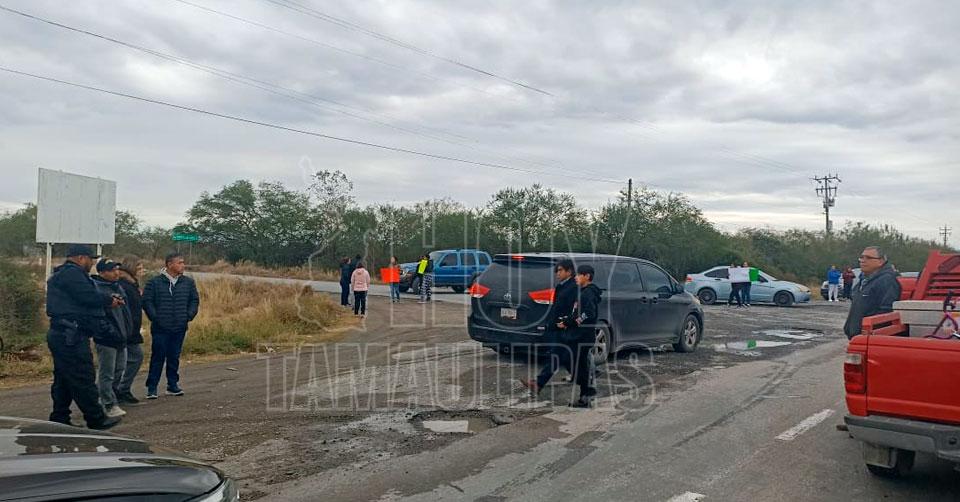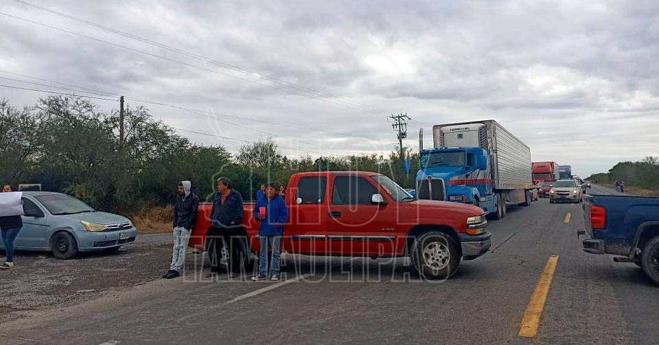 Reynosa, Tamaulipas. - En protesta por falta de suministro eléctrico, pobladores de diversos ejidos de Reynosa bloquearon la carretera Reynosa-San Fernando en ambos sentidos, a la altura del kilómetro 56.