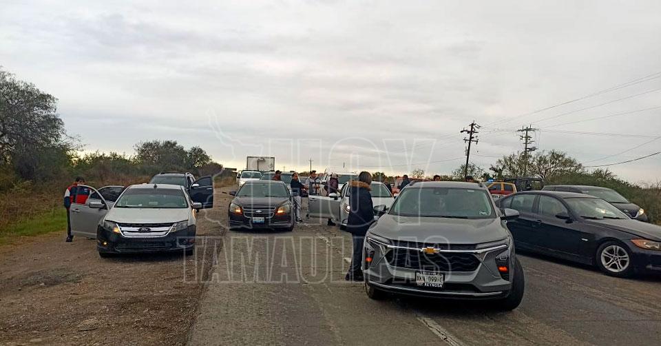 Personal de la Guardia Estatal de Apoyo Carretero se percató del bloqueo realizado con vehículos y personas, quienes señalaron ser habitantes de los ejidos Martín Rocha, 10 de Noviembre, Puerto las Flores y Conquista Campesina.
