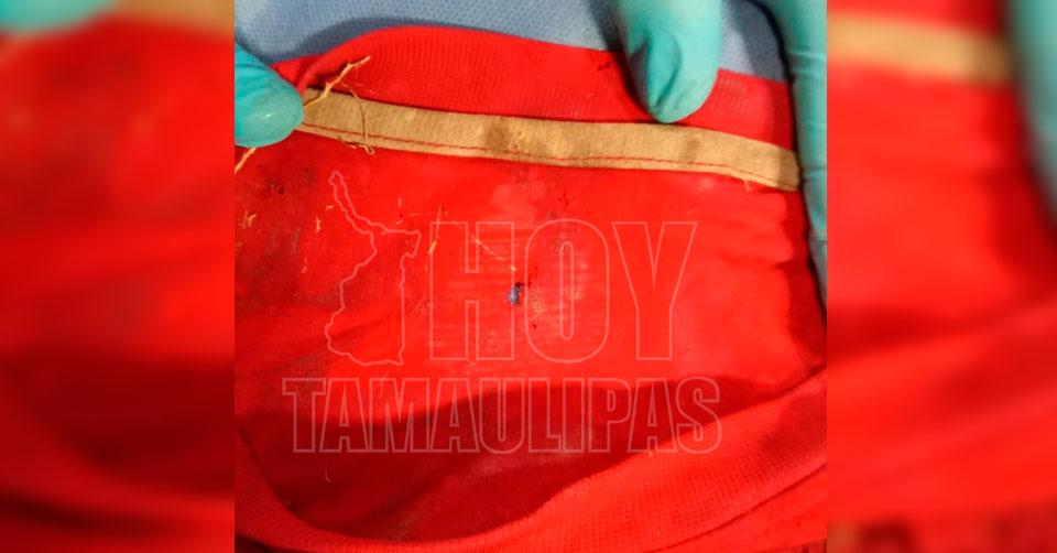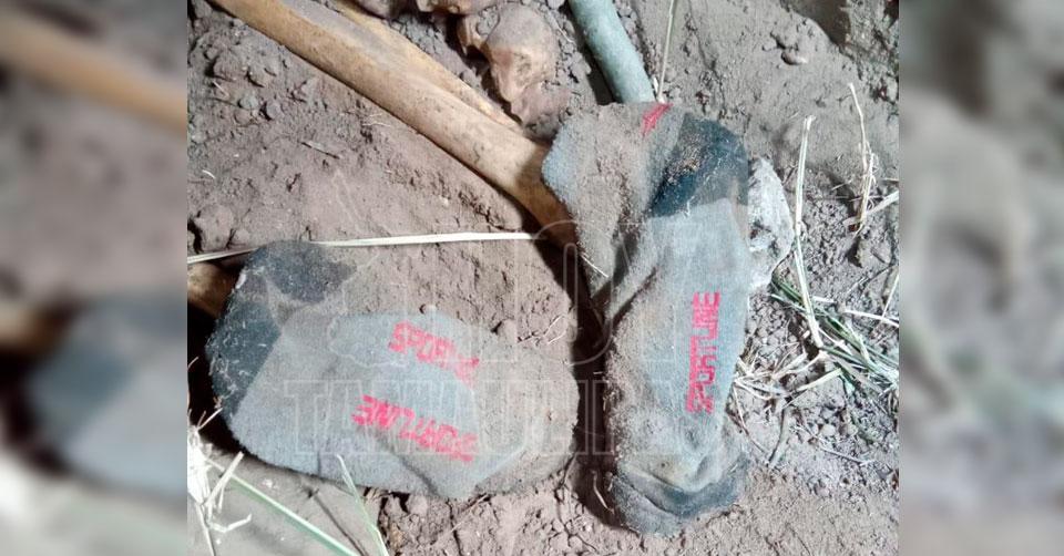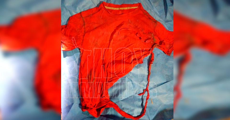 En el lugar se encontraron prendas de vestir que podrían corresponder a un hombre, una playera roja marca Starter, un short azul oscuro tipo deportivo marca Sportline talla 34, y calcetines grises con negro de la misma marca.