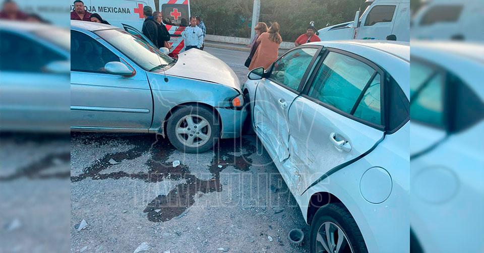 Ciudad Victoria, Tamaulipas. – Una conductora resultó lesionada al estrellar su cabeza con el parabrisas del auto que manejaba, tras chocar con otra unidad motriz que se le atravesó al paso, en el Eje Vial Lázaro Cárdenas y calle Michoacán.