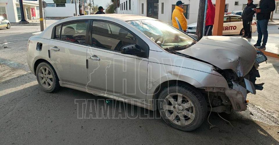 El conductor de un Nissan March blanco circulaba en dirección de oriente a poniente por la calle Abasolo, pero al cruzar sin precaución la calle 8 fue impactado por un vehículo Nissan Sentra que circulaba con preferencia en sentido de norte a sur.
