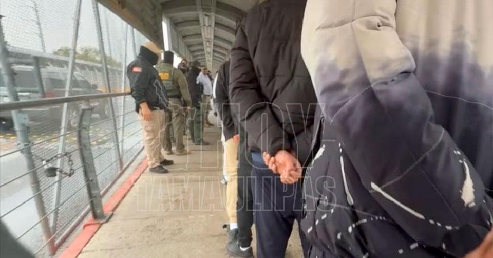 Fueron trasladados en tres grupos hasta la parte media del puente, donde ya los esperaban agentes del Instituto Nacional de Migración (INM) de México.