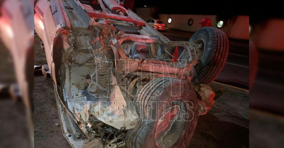 Es el sitio quedó llantas arriba y convertido en fierro retorcidos el vehículo Jeep Liberty color blanco, que de acuerdo a los primeros reportes circulaba de Altamira hacia Tampico con exceso de velocidad.