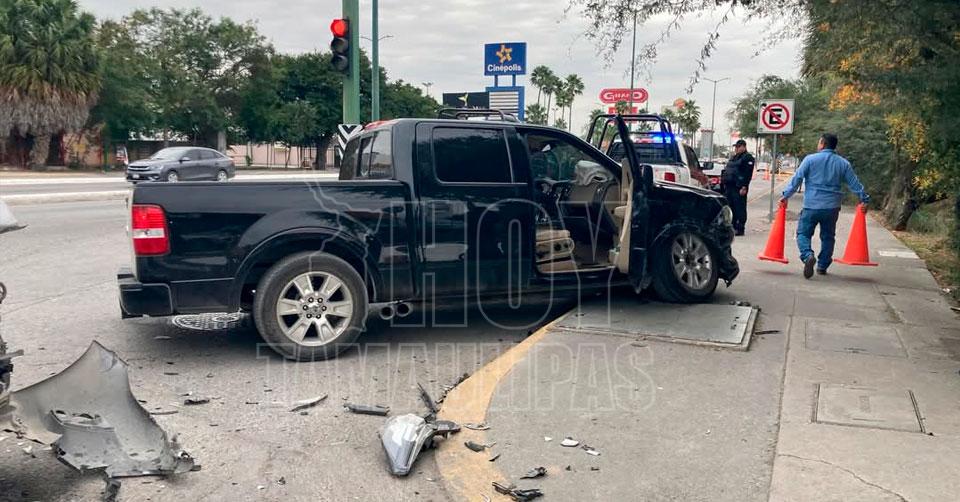 El percance ocurrió en el cruce de la calle Ocho o Bulevar Tamaulipas con la avenida Del Valle, cuando una camioneta Ford F-150 intentó girar a la izquierda.
