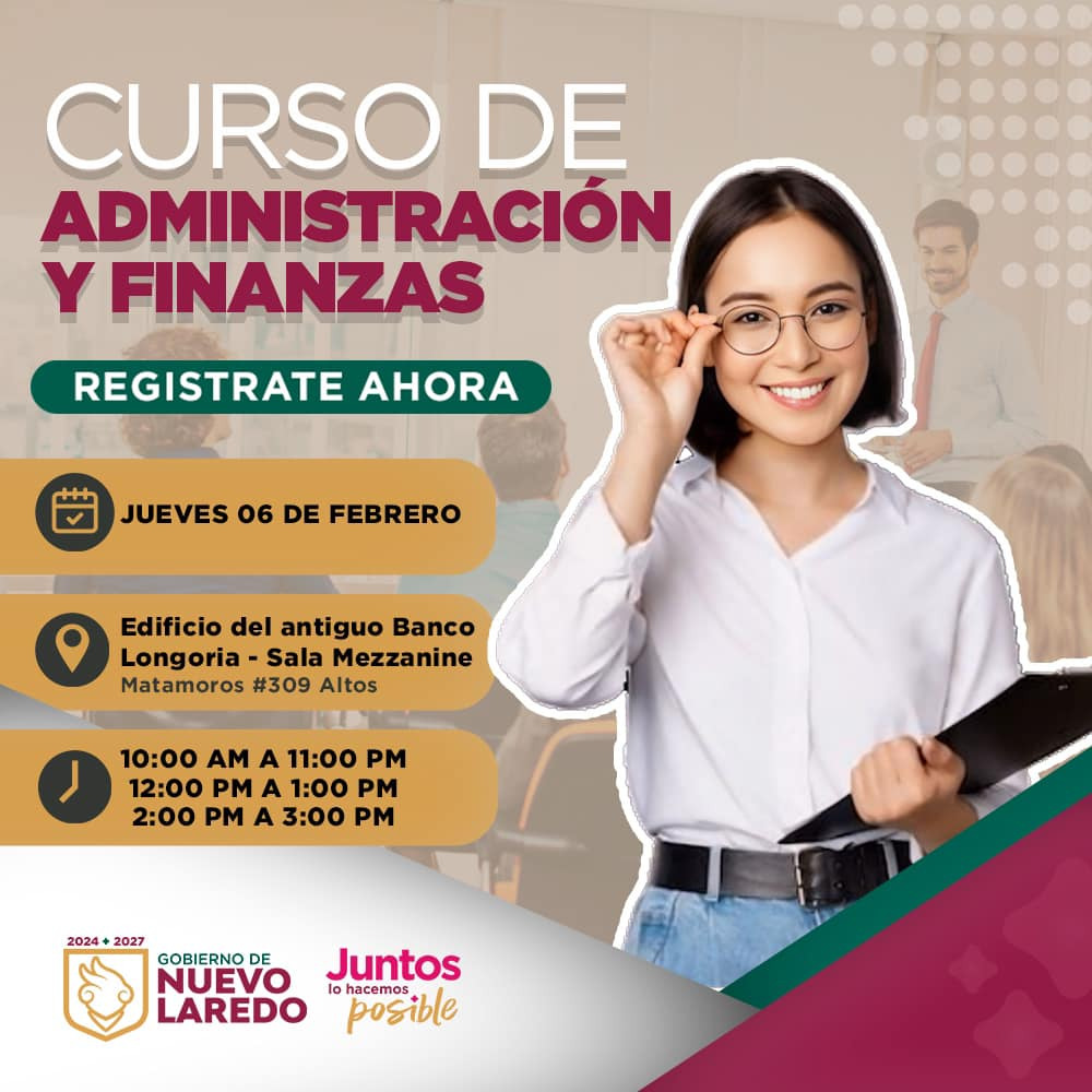 Nuevo Laredo, Tamaulipas.-Con el objetivo de fortalecer el ecosistema emprendedor y brindar herramientas clave para el crecimiento de los negocios locales, el Gobierno de Nuevo Laredo, en coordinación con la Dirección de Comercio, Empleo y PYMES, invita a todos los emprendedores y emprendedoras de la ciudad a participar en el curso gratuitos de Administración y Finanzas, que se llevará a cabo el próximo jueves 06 de febrero de 2025.