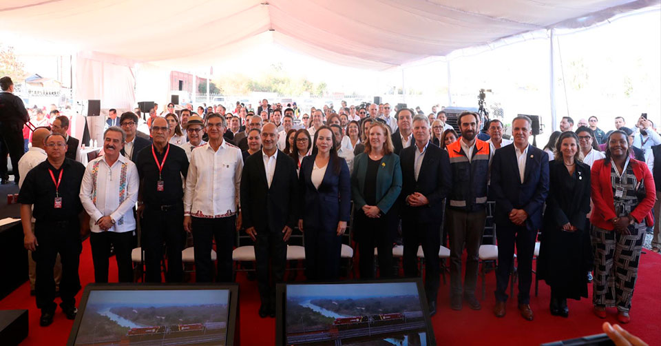 Jesús Antonio Esteva Medina, Secretario de Infraestructura, Comunicaciones y Transportes (SICT) y representante de la presidenta de México, Claudia Sheinbaum Pardo; el gobernador de Tamaulipas, Américo Villarreal Anaya; y la alcaldesa de Nuevo Laredo, Carmen Lilia Canturosas Villarreal, junto a Oscar Del Cueto, presidente y representante ejecutivo de CPKC de México encabezaron la ceremonia, destacando la importancia de esta infraestructura para fortalecer el comercio transfronterizo y la economía regional.