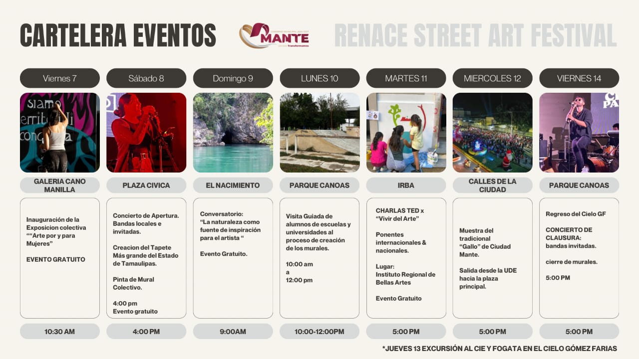 Este viernes a las 10:30 se realizará la inauguración del festival, en las instalaciones de la Galería "Ramón Cano Manilla" y se invita a seguir las actividades que se difundirán a través de la página del Gobierno Municipal de El Mante.