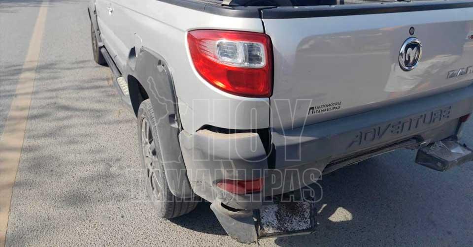 No frenó a tiempo y se ensartó con camioneta en Ciudad Victoria