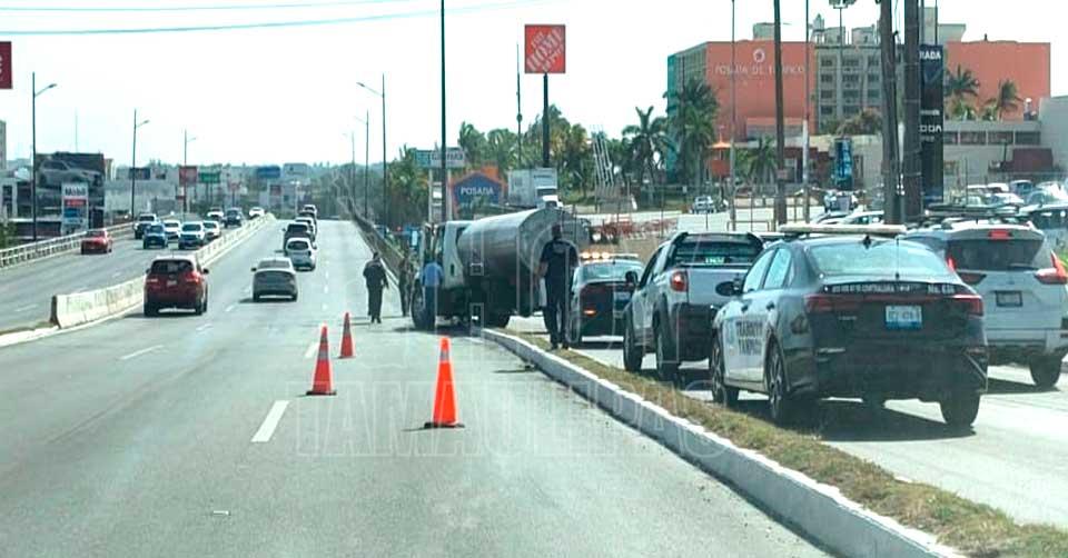 El mismo operador explicó a elementos de Tránsito que poco antes de llegar al paso a desnivel notó que a la unidad le fallaban los frenos, por lo que a fin de evitar impactar a algún vehículo decidió detener a la pipa contra el camellón y la contención del puente.