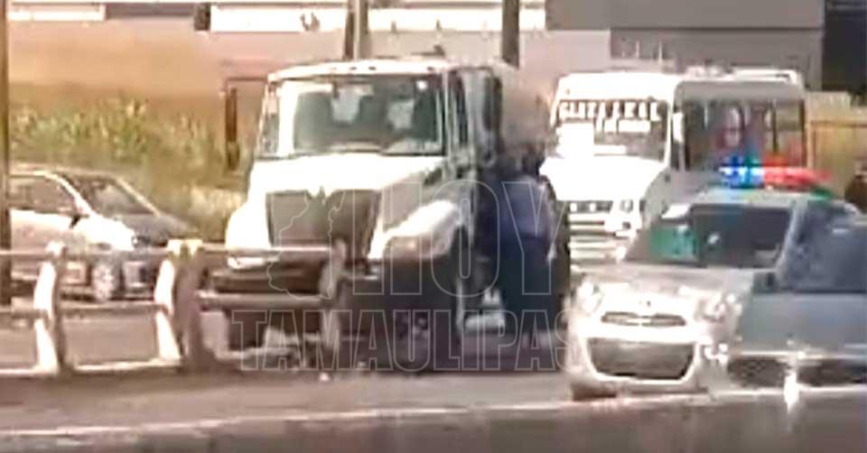 Tampico, Tamaulipas. - A fin de evitar el provocar un accidente mayor, el operador de una pipa distribuidora de agua que se quedó sin frenos decidió detener la marcha impactándose contra la barrera de contención del puente en el paso a desnivel ubicado en el acceso al sector Lomas de Infonavit.