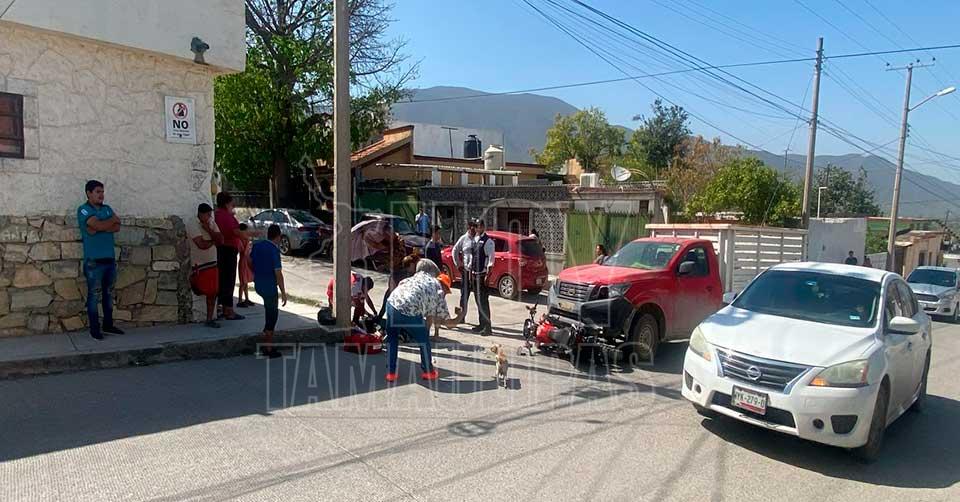 Mujer resulta herida tras choque entre motocicleta y camioneta en Ciudad Victoria
