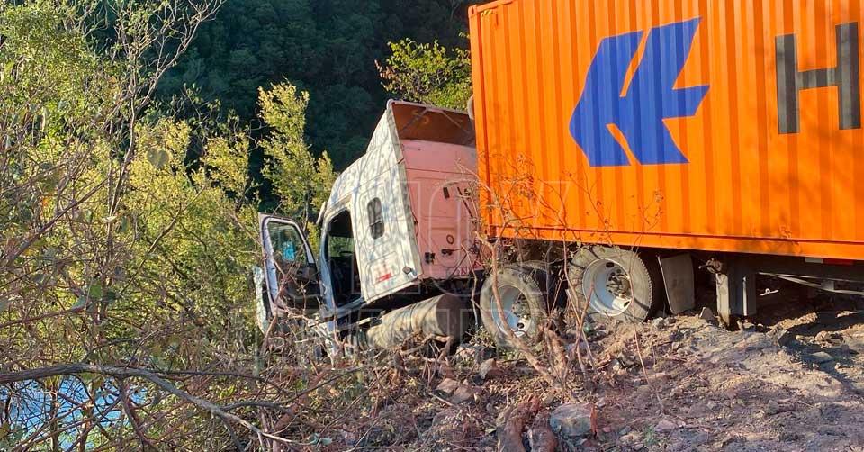 A pesar de la pérdida de control, el chofer logró estabilizar el tracto, aunque el segundo remolque volcó, quedando a punto de caer al barranco; el conductor logró evitar una tragedia mayor.